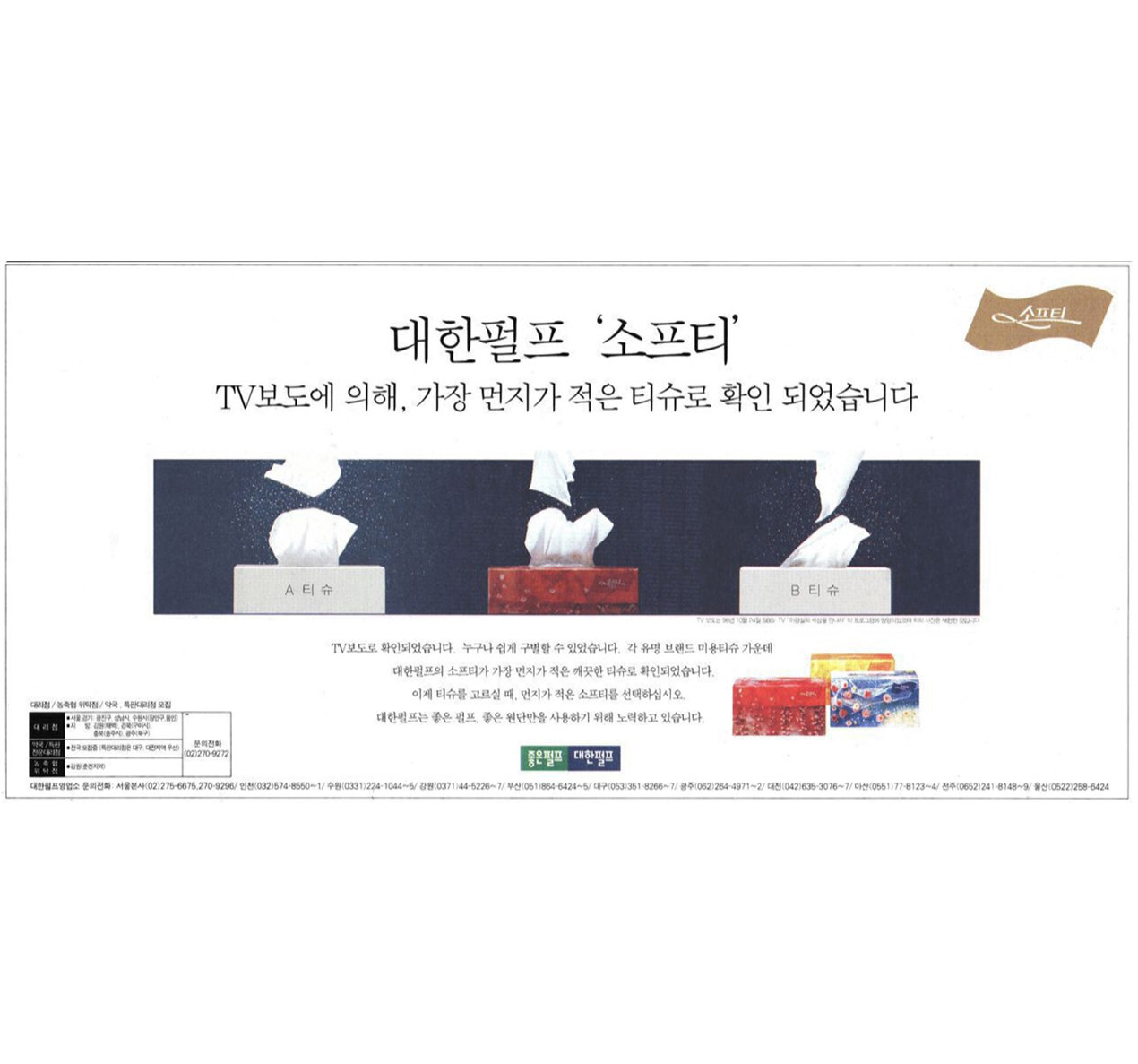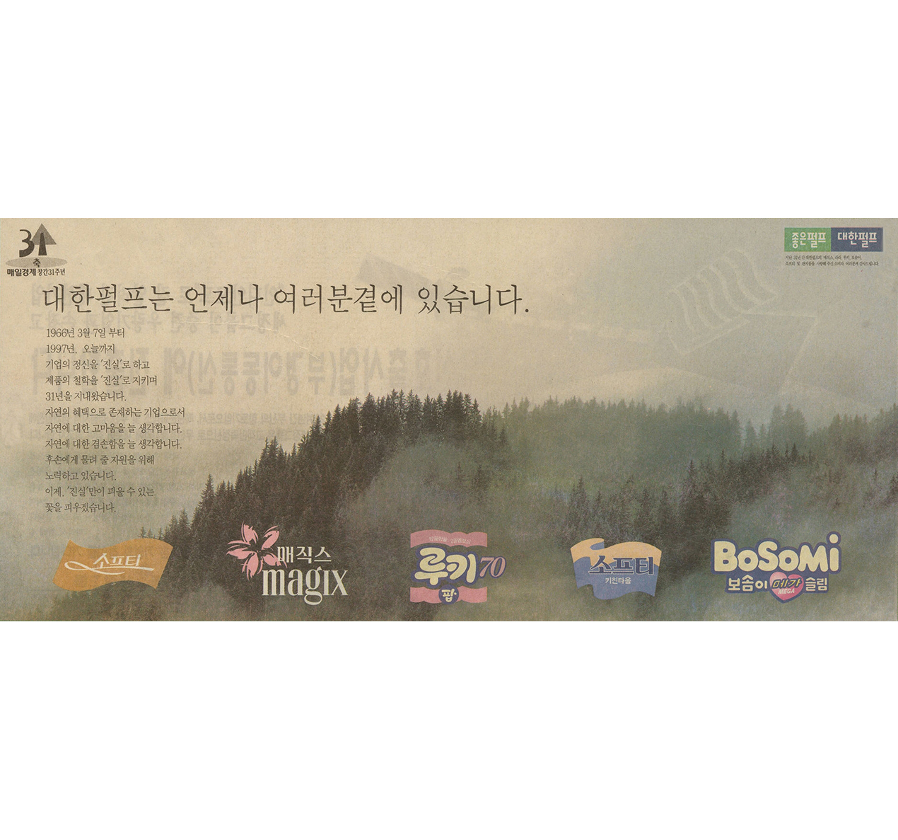 화장지 업계 최초 iso 9002 인증 획득 기념 광고(매일경제, 1995. 11. 4)