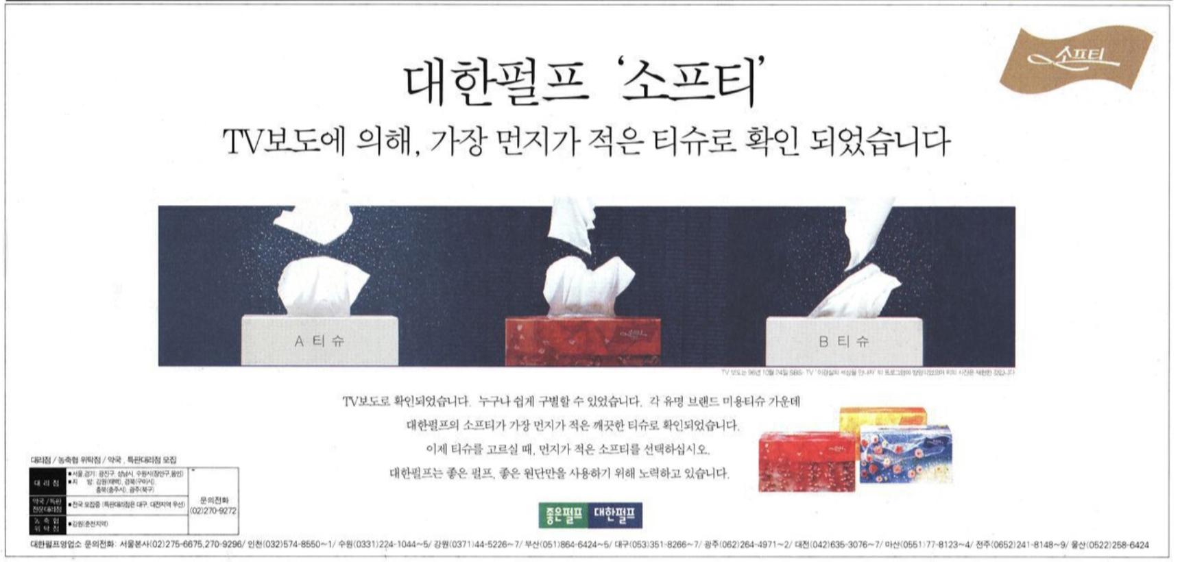 대한펄프 소프티 광고(조선일보, 1997. 3. 10) 이전글 기업 이미지 광고(매일경제, 1997. 3. 24) 다음글 창립 30주년 기념 광고(매일경제, 1996. 8. 30) 목록
