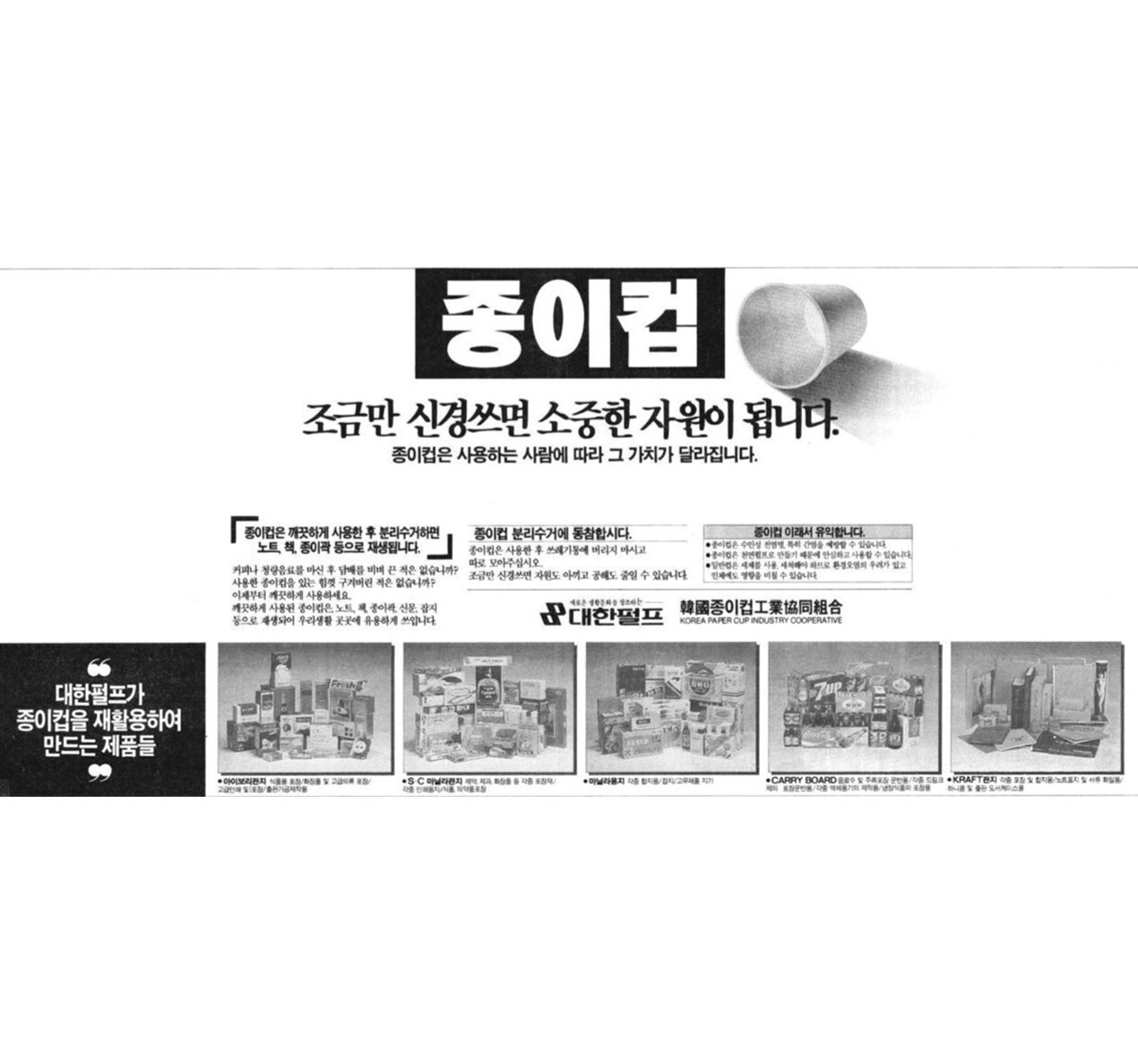 종이컵 재활용 광고(조선일보, 1992. 10. 7)