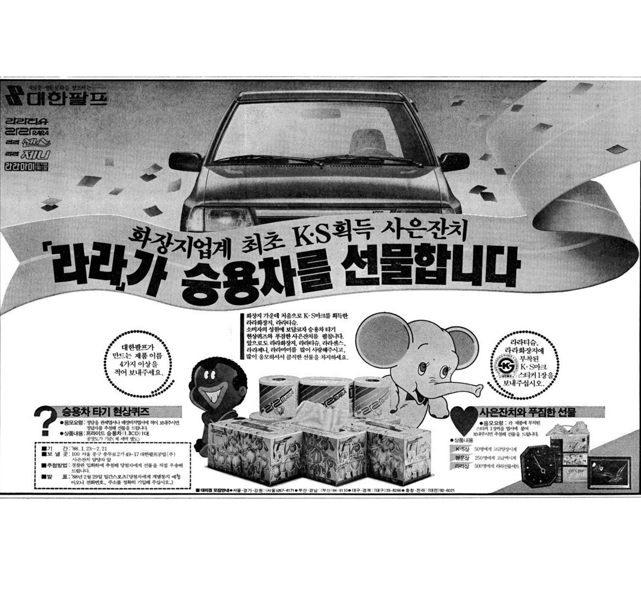 화장지 업계 최초 KS획득 사운잔치 광고(동아일보, 1988. 1. 18)