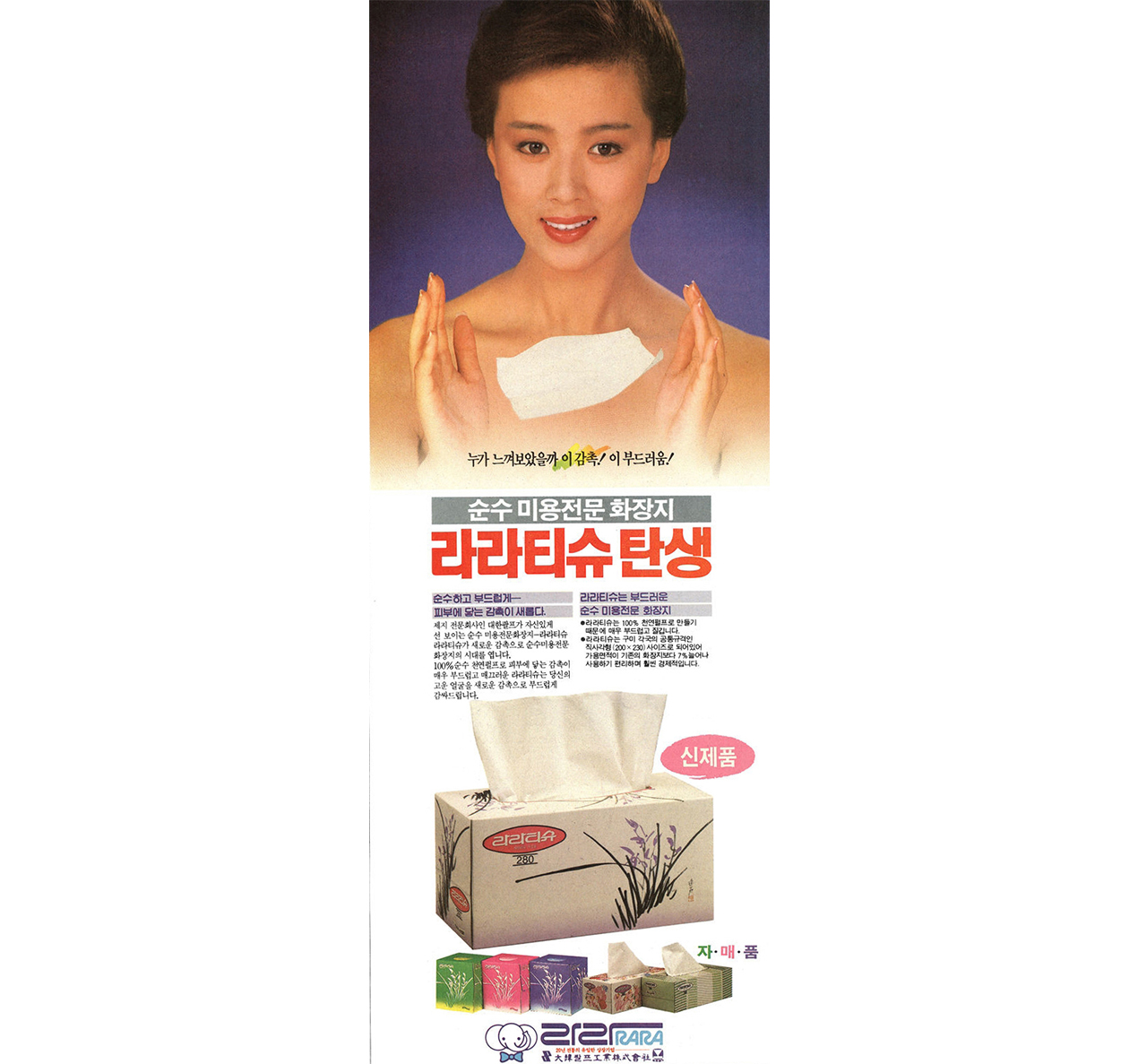 라라 티슈 탄생 광고(동아일보, 1986. 9. 27)