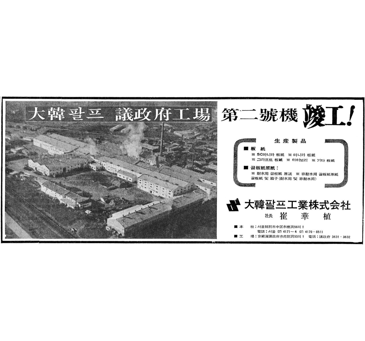 대한팔프공업 2호기 준공 광고(경향신문, 1973. 11. 9)