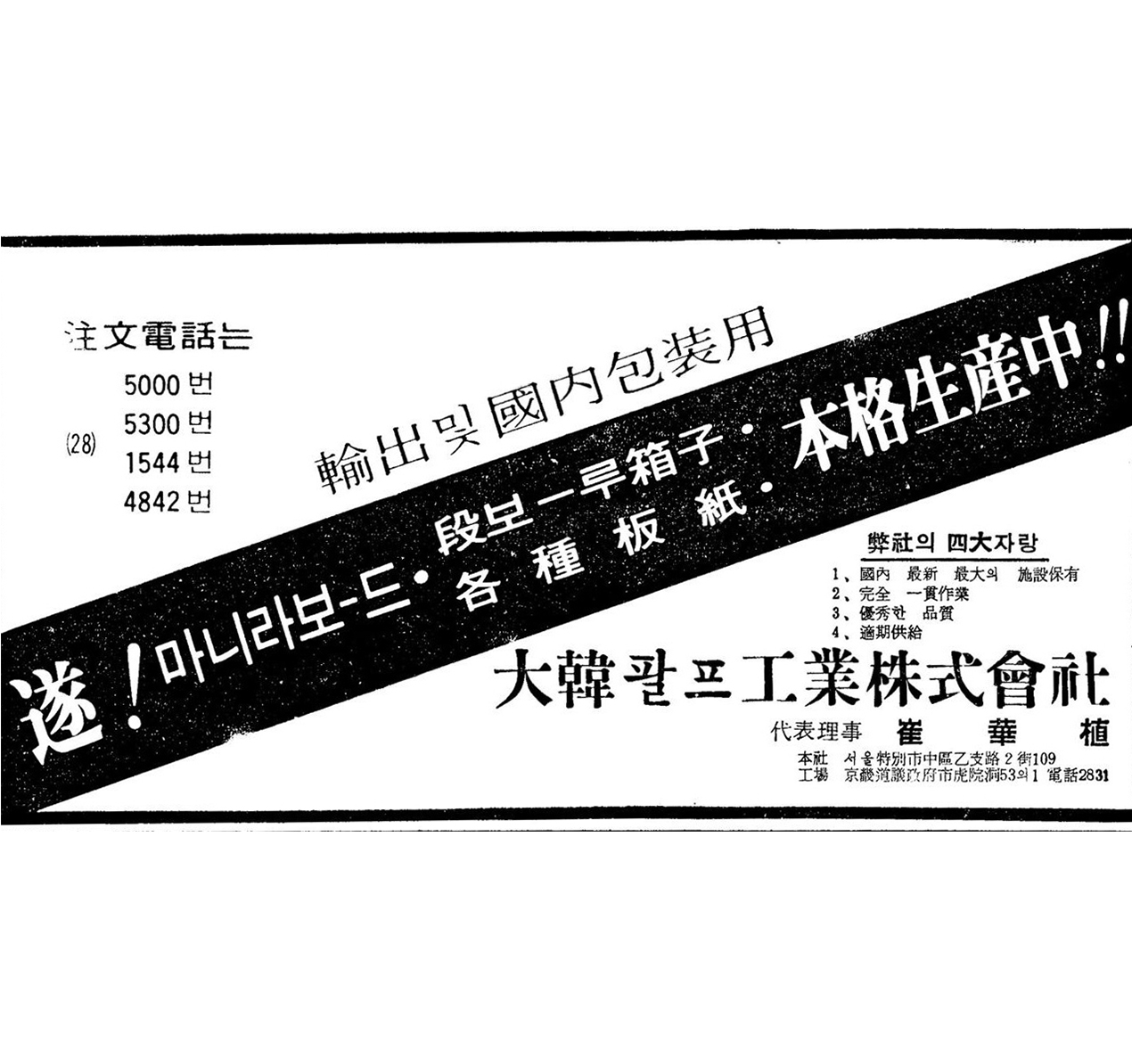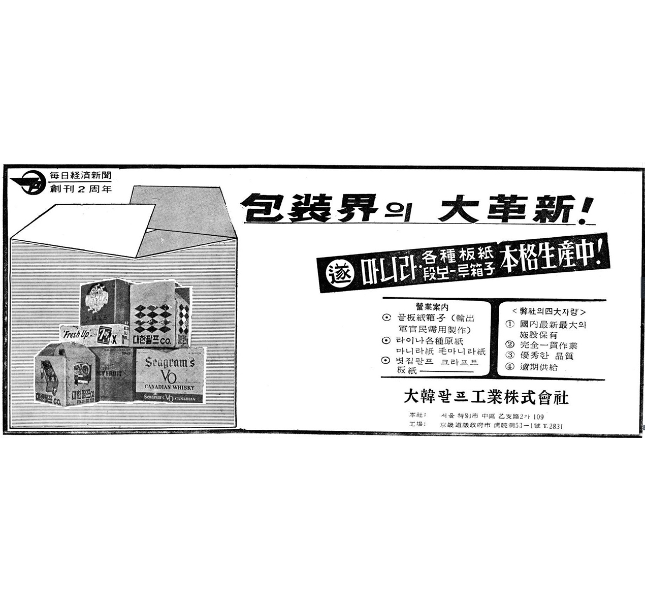대한팔프공업 제지 관련 광고(매일경제, 1968. 3. 23)